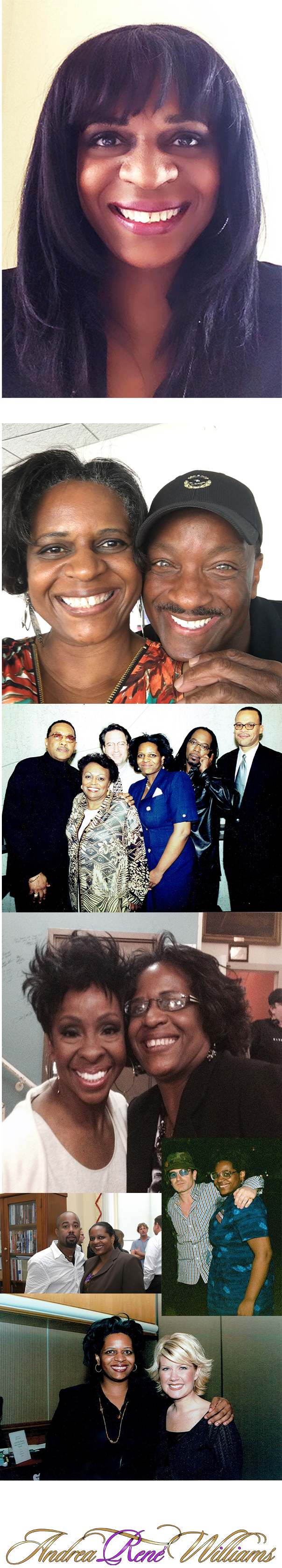 Photos: Top to Bottom, Left to Right - Andrea R. Williams, Williams with Donnie Simpson, Williams with Dr. Bobby Jones, Dorothy Norwood, Daryl P. Friedman (of the Recording Academy), V. Michael McKay and Jerry Mannery, Williams with client Gladys Knight, Williams with Hootie of Hootie & The Blowfish, Williams with Bono of U2 and Williams with Natalie Grant.